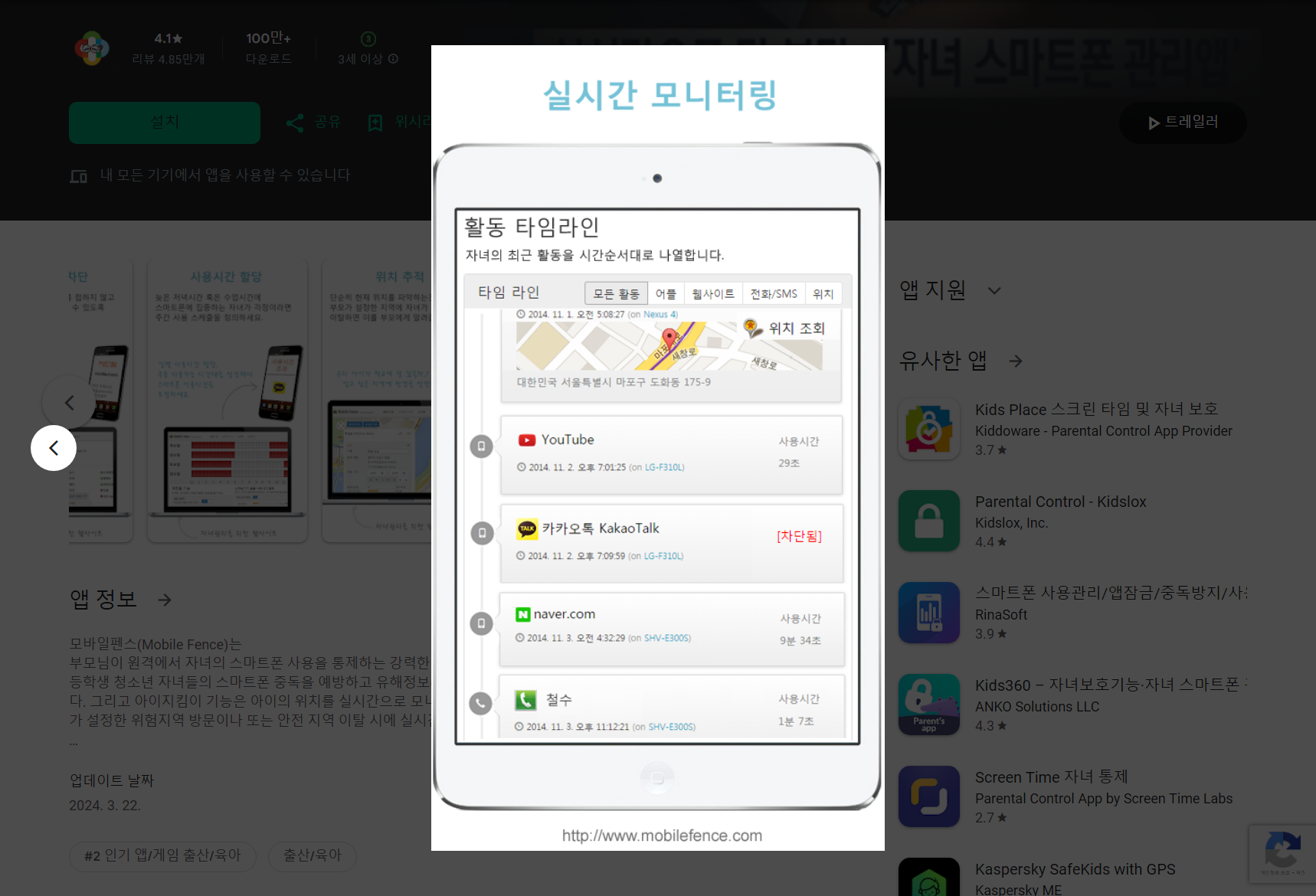 🔗 모바일펜스(Mobile Fence), 자녀 스마트폰 관리, 스마트폰 중독 예방, 실시간 위치 확인